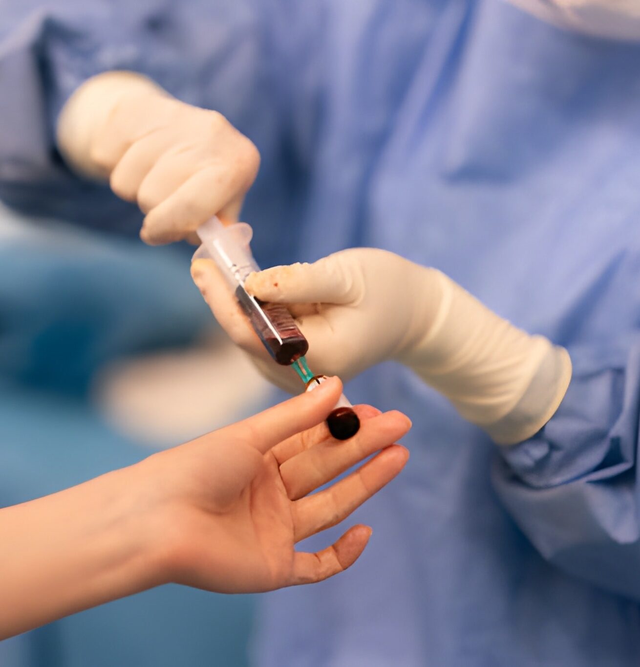 A sterile blood sample is taken, which may include liver, kidney, pre op, or custom panels.
